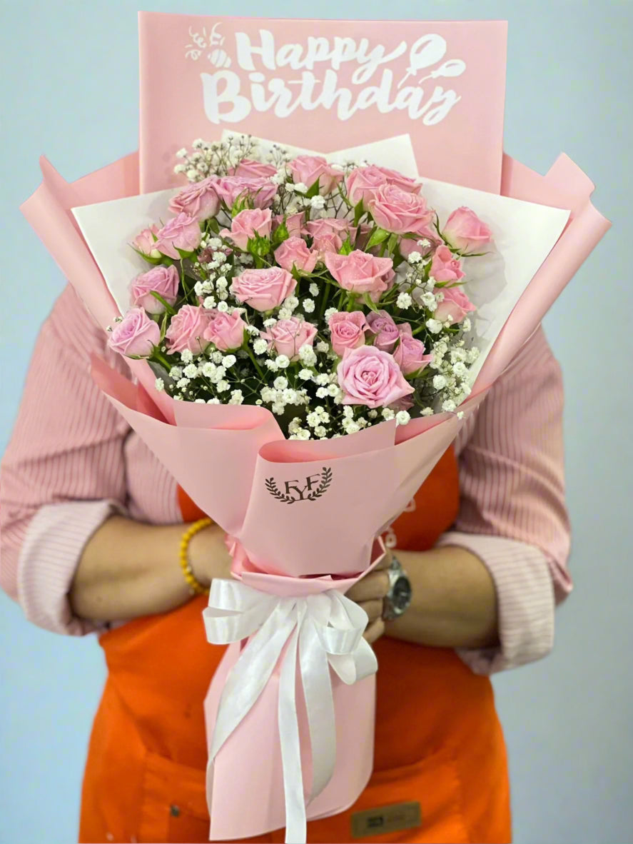6pcs of Pink Baby Rose Bouquet with personalized printing