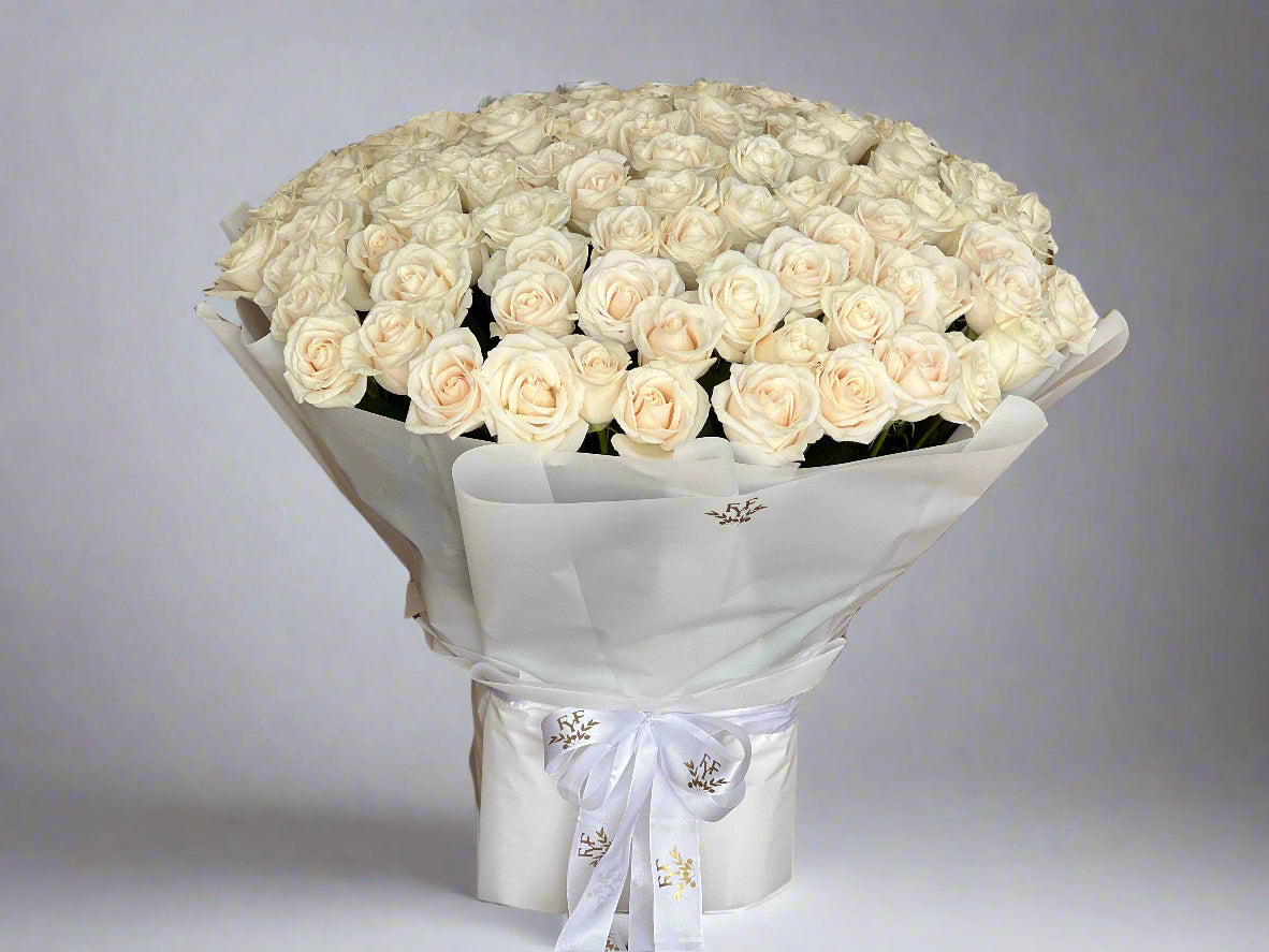 The beauty and freshness of white 100pcs roses in huge Bouquet
