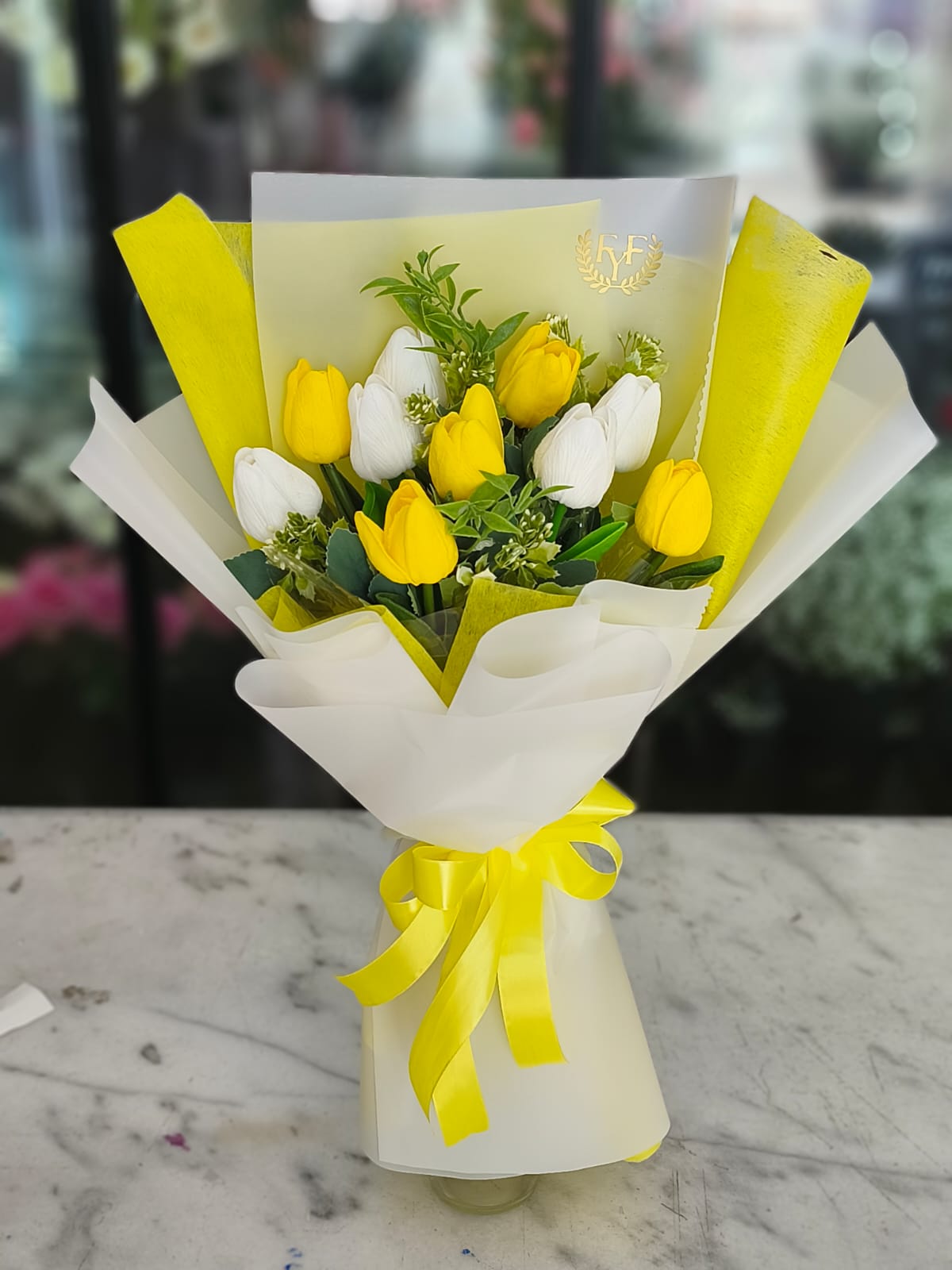 Romantic Luxury Yellow & White Tulip Bouquet.