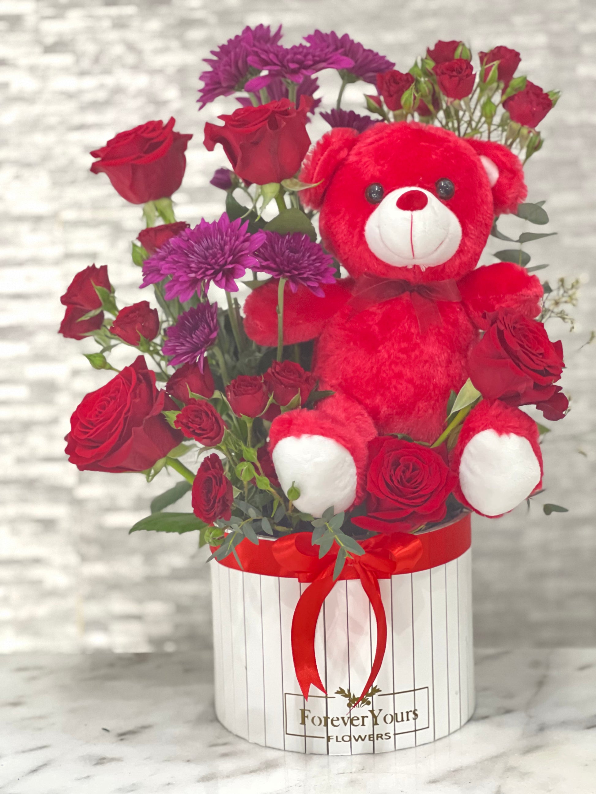 Box arrangement with cutey little teddy