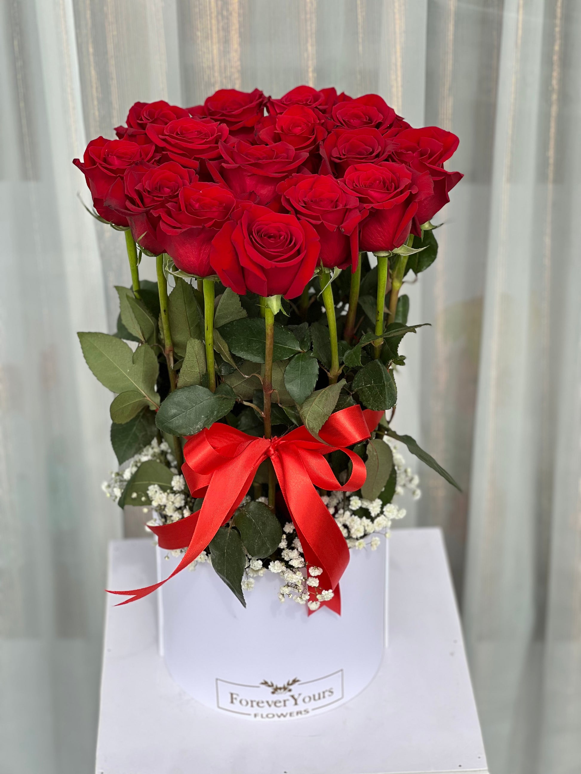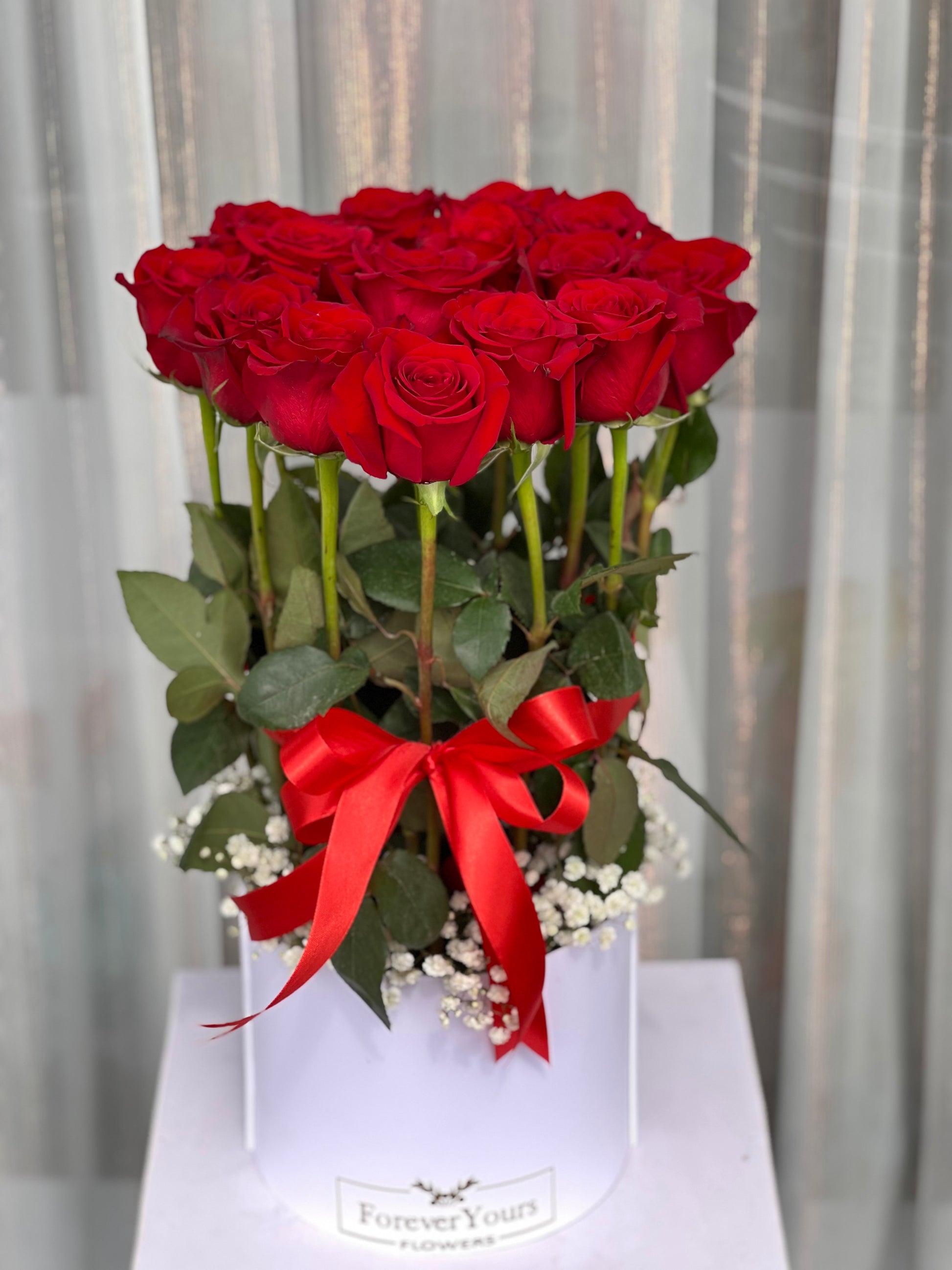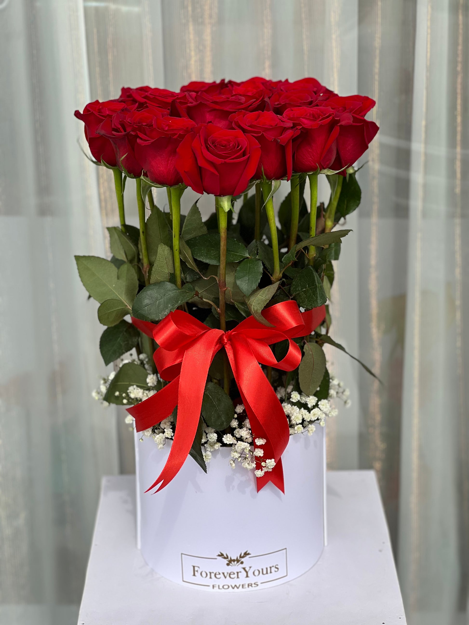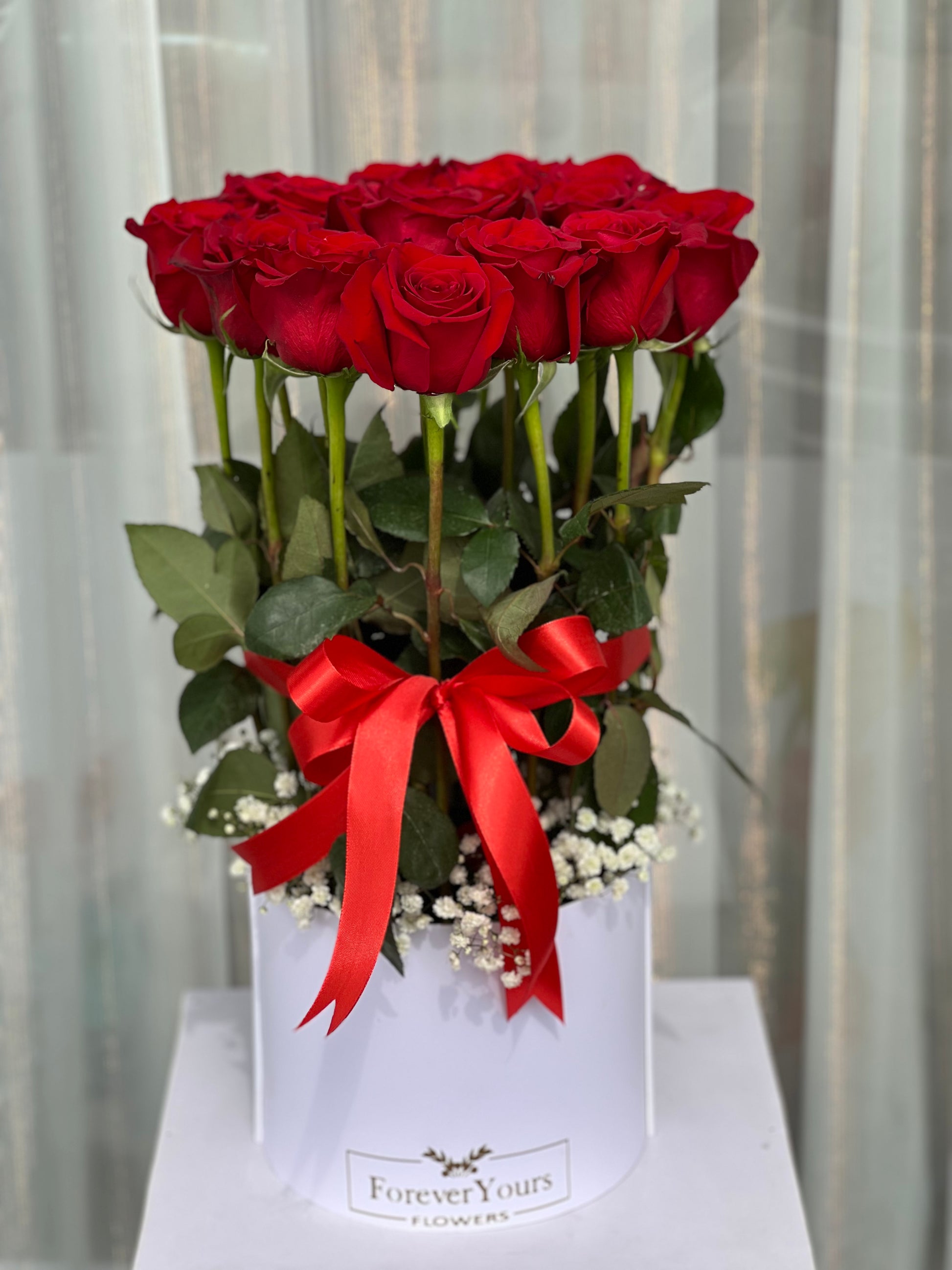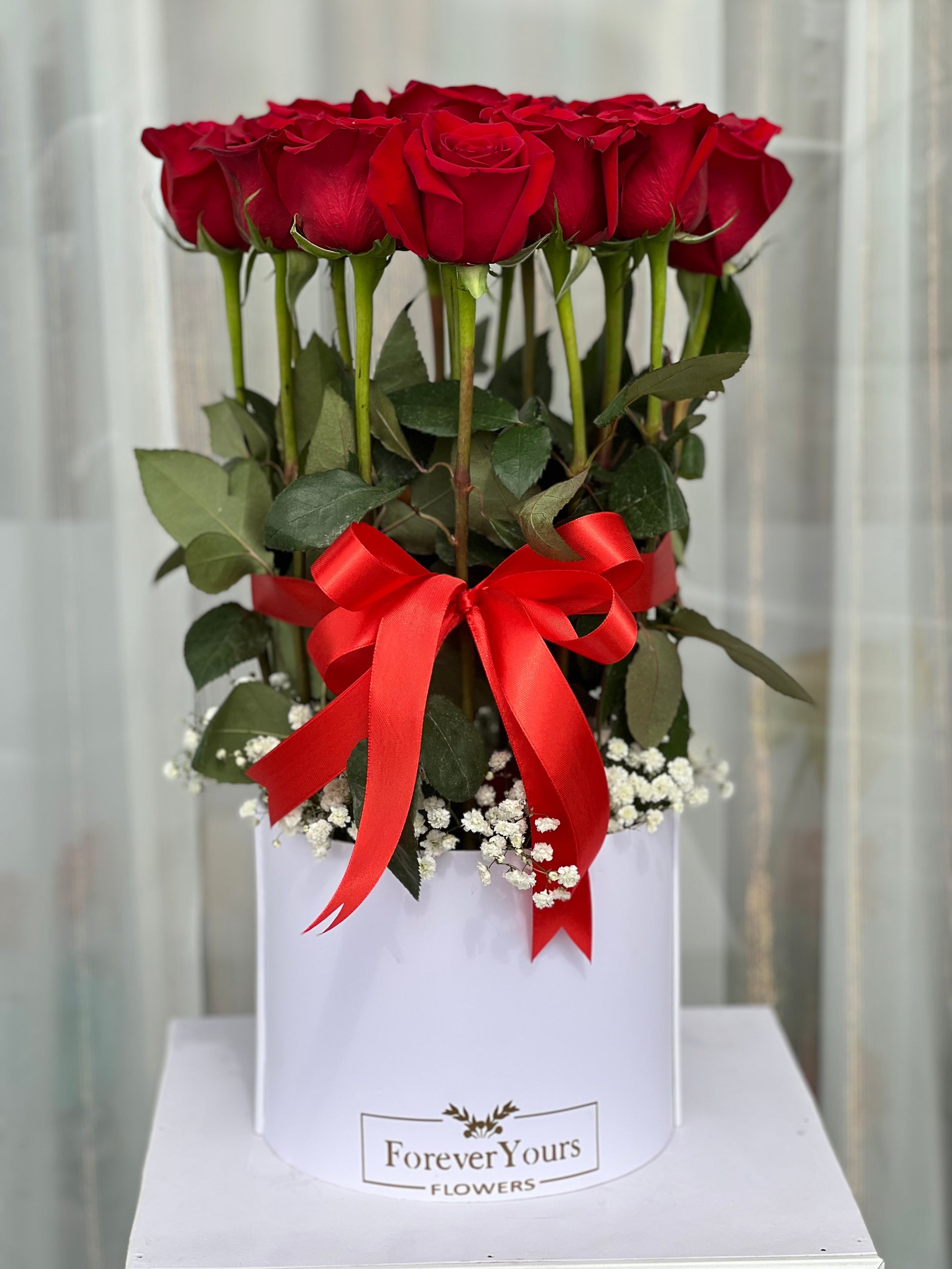 15 pcs Red modern Red roses in white round forex luxurious box.