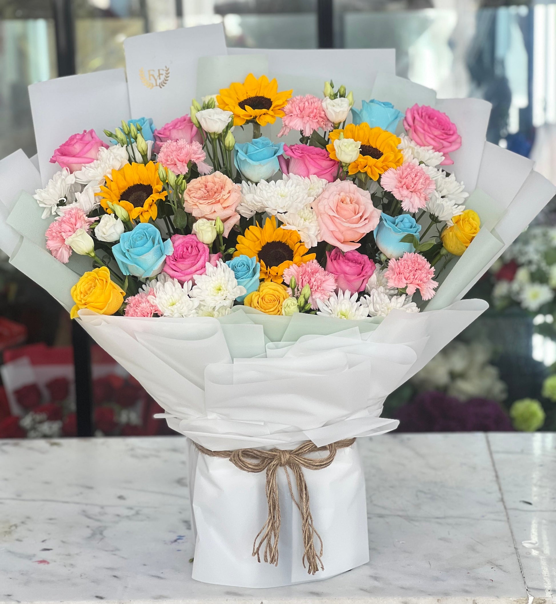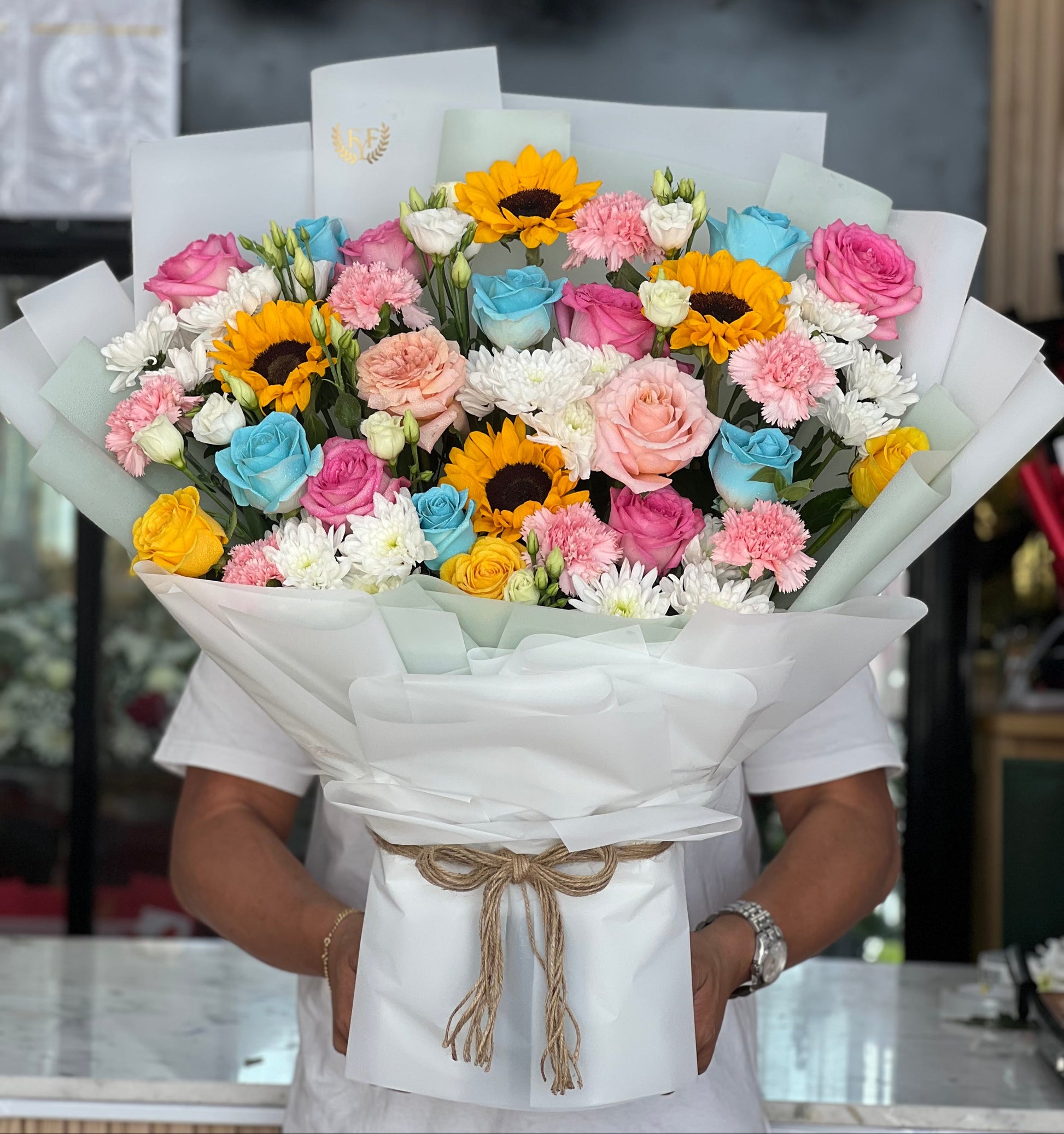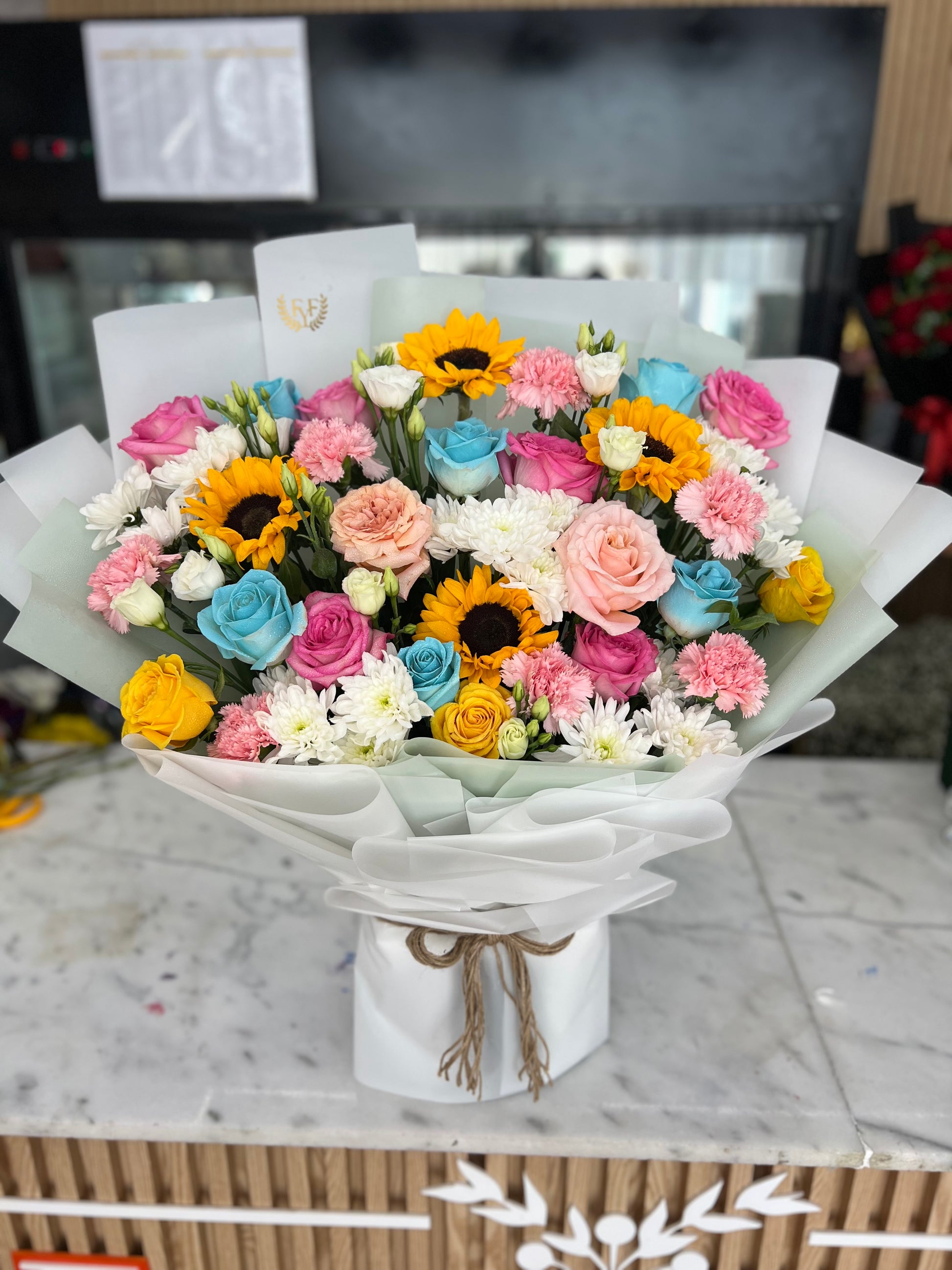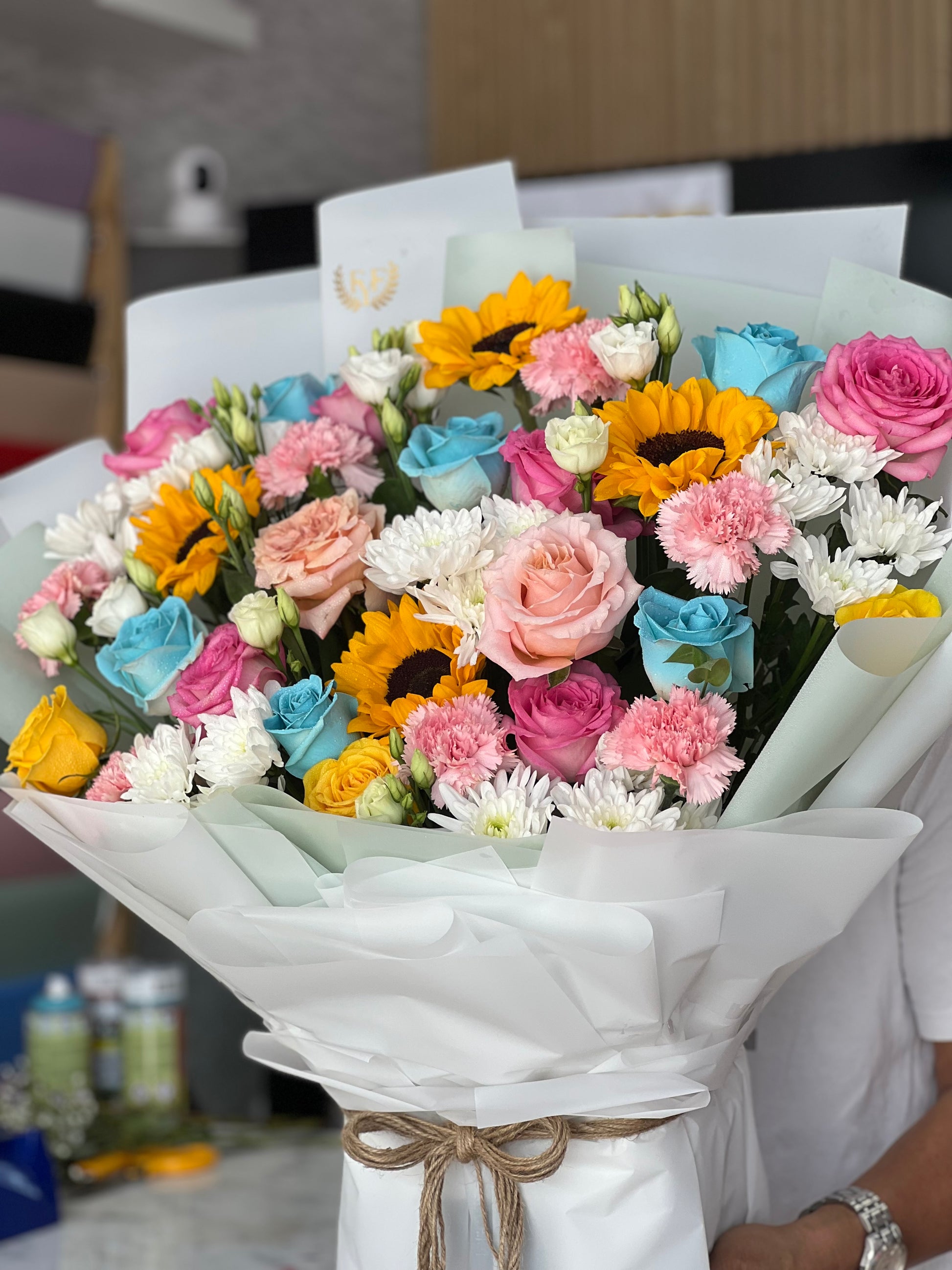 Experience the elegance of our Mixed Premium Flower Standing Bouquets, crafted with the finest seasonal blooms. Each arrangement blends luxurious textures, rich colors, and artistic design — creating a breathtaking statement for any occasion. Perfect for gifting, celebrations, and décor.
